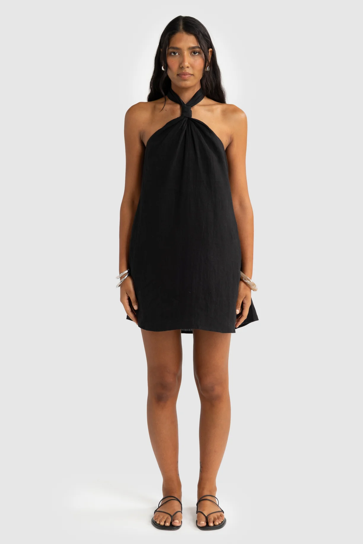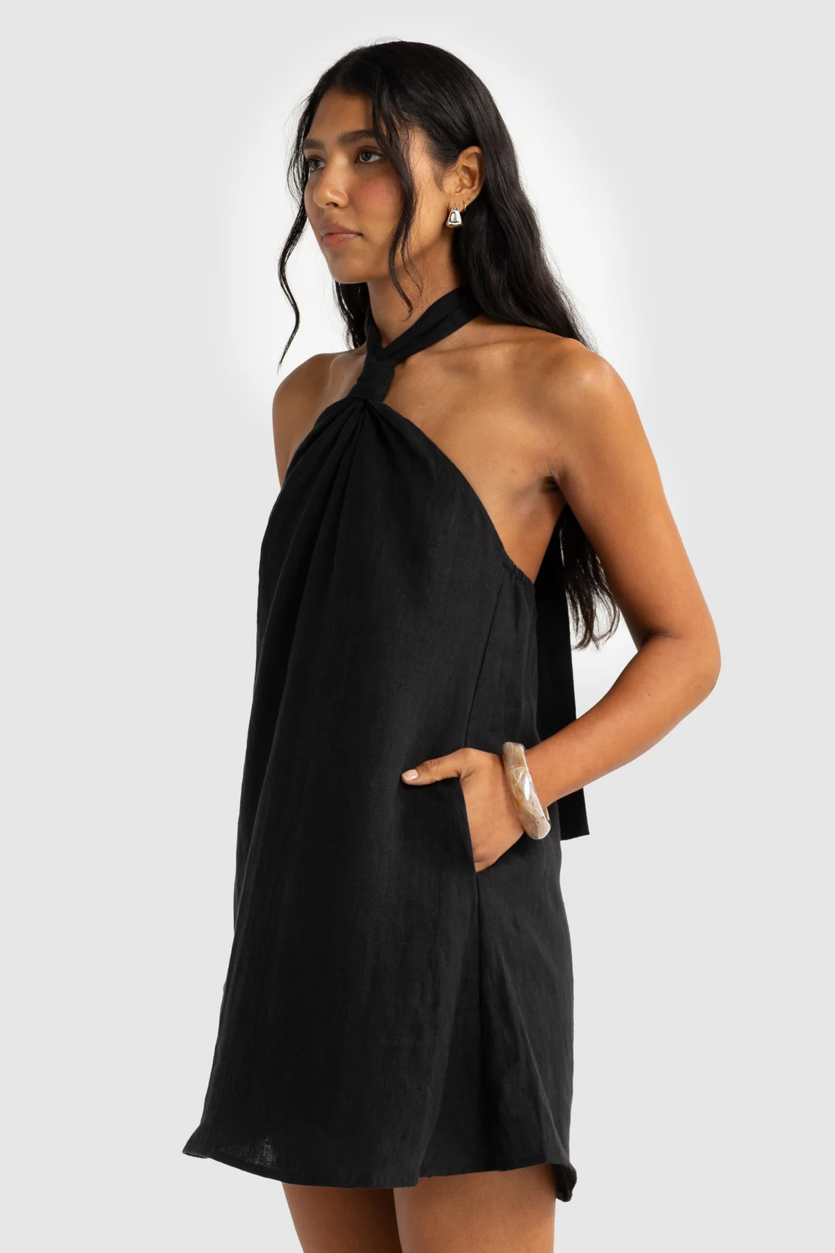 Mira Linen Halter Mini Dress Black
