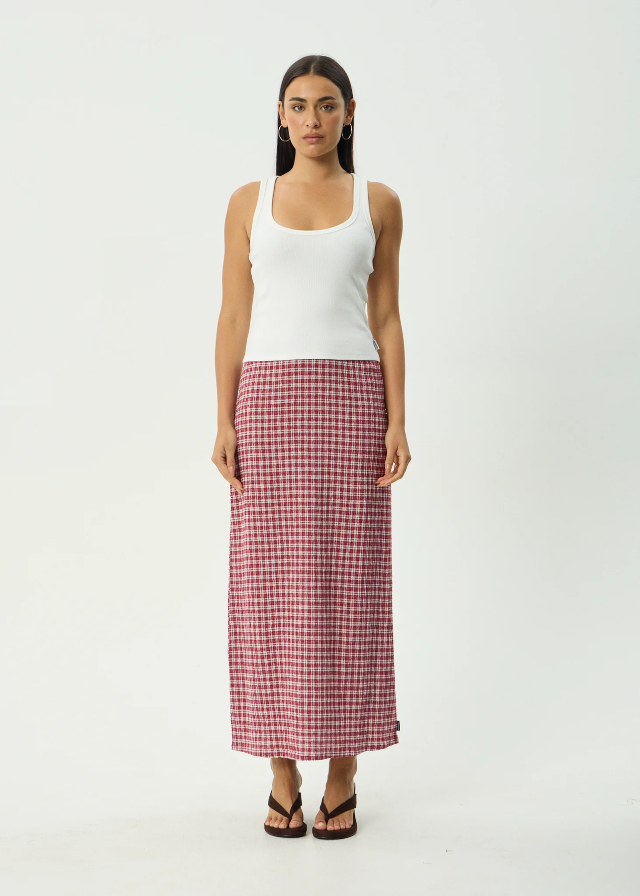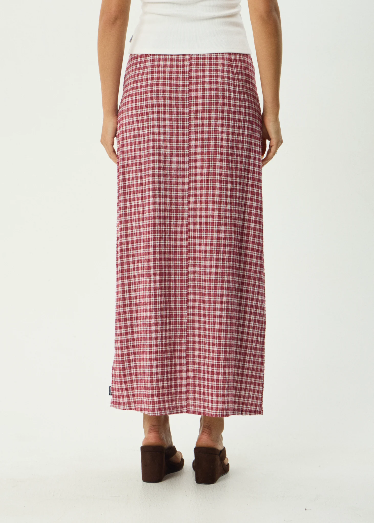 Base Seersucker Maxi Skirt Burgundy Check