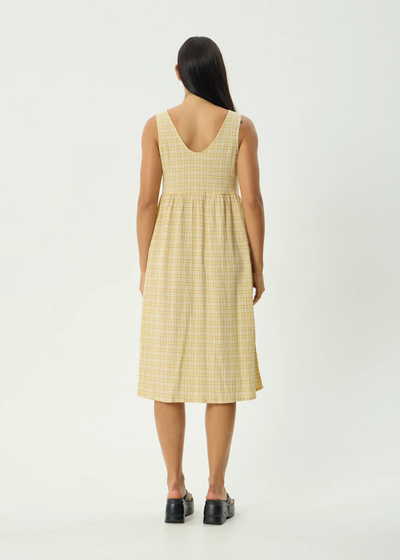 Sunday Seersucker Check Midi Dress Lemon Dress